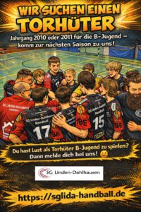 Unsere zukünftige männliche B-Jugend ist bereits mitten in den Planungen für die kommende Saison 2026/2027 – und dafür suchen wir noch Verstärkung zwischen den Pfosten!
